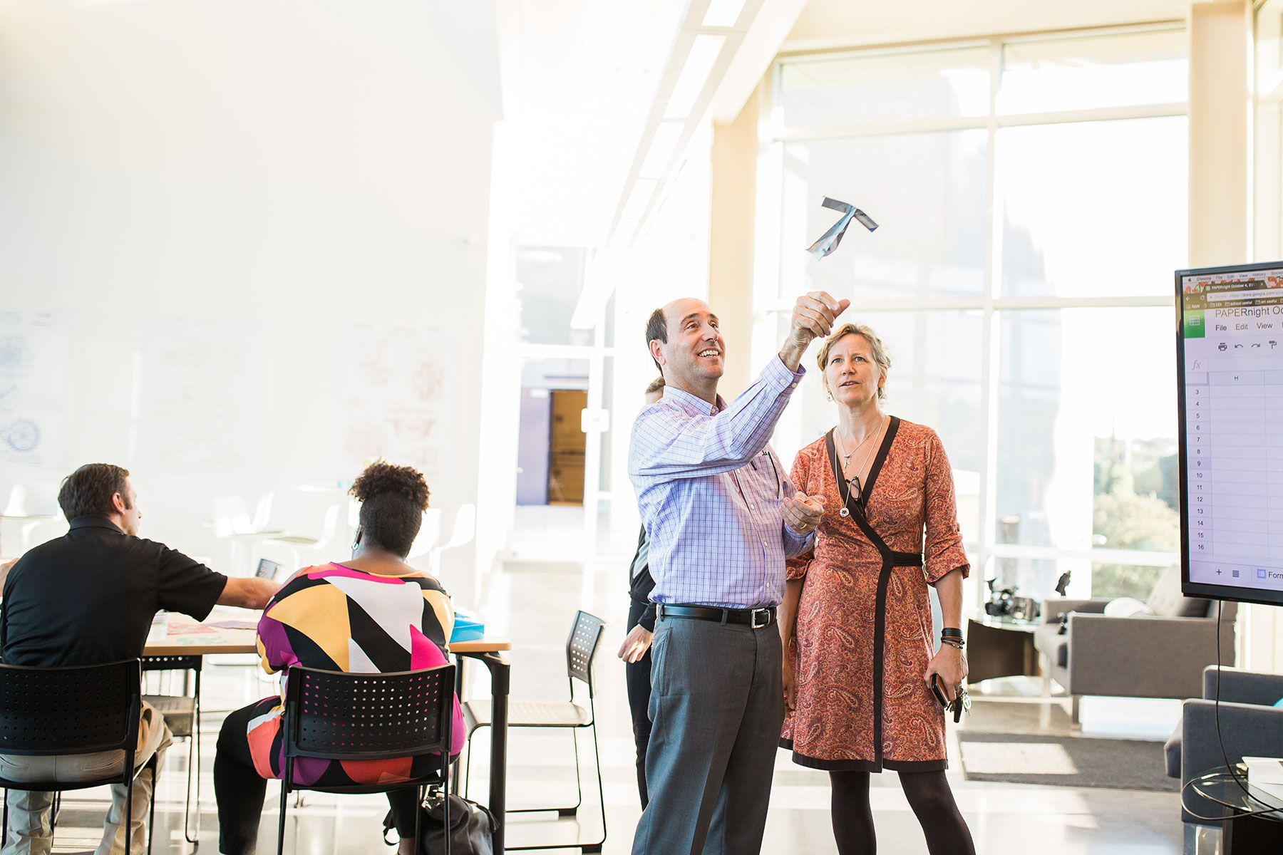 The co-directors want the community to realize that CDI is a place for people of all ages to interact and share ideas, not just college students and faculty. As part of that goal, CDI formed a relationship with Flywheel, a coworking space for entrepreneurs and small businesses that operates out of the CDI building. CDI also hosts events for kindergarten through 12th grade students, adding to the mix of ages—and perspectives—filling the space.