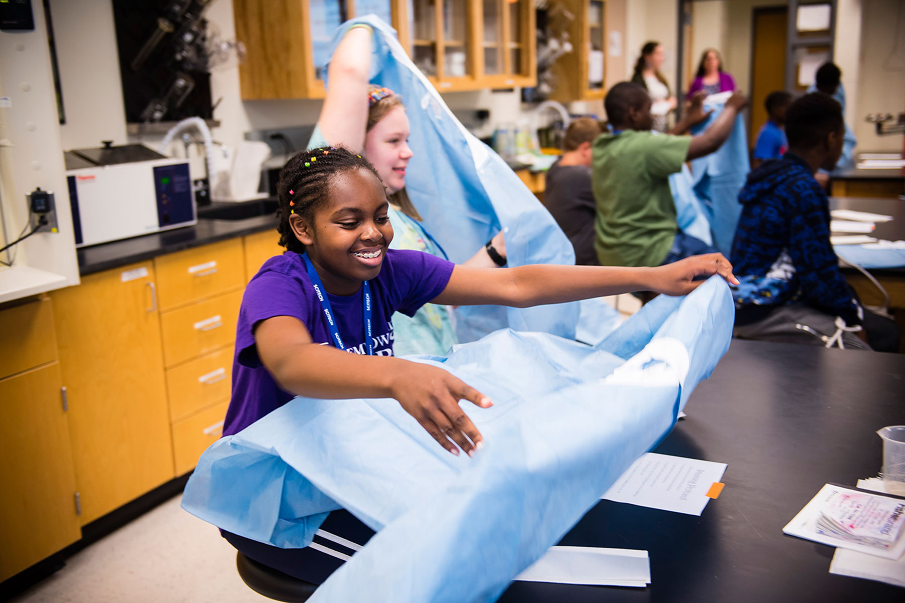 “Anyone know what this box does?” Martha Alexander-Miller, PhD, asks the dozens of eighth graders crowding into her microbiology & immunology lab in Biotech Place downtown.
