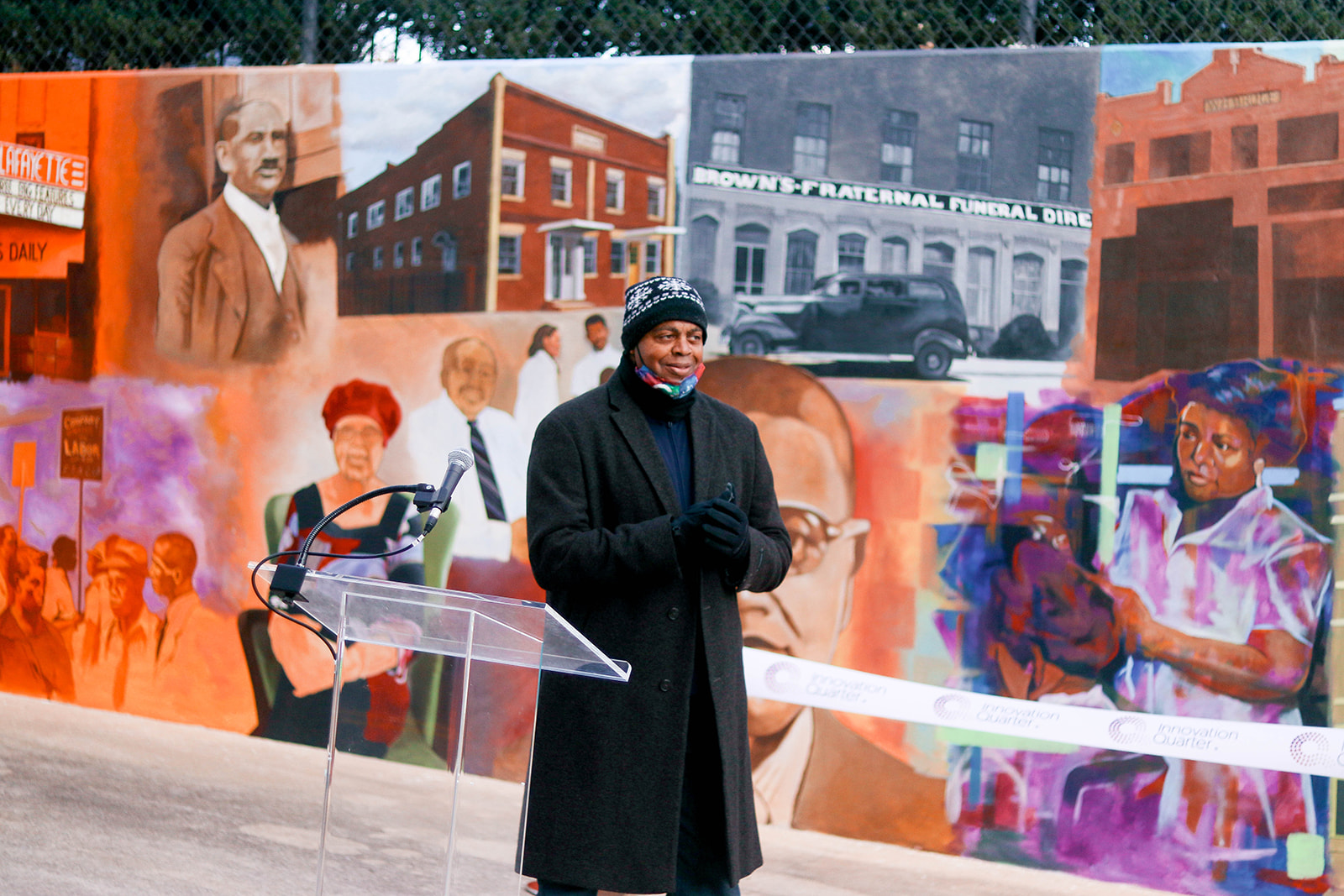 Critics caution that innovation districts often thrive at the expense of arts and civic culture. The Innovation Quarter has been deliberate about sponsoring public art projects that promote and educate viewers on the neighborhood’s rich history and culture. The Depot Street Renaissance Mural, painted by local artist Leo Rucker, illustrates Depot Street’s history as one of the first prestigious Black neighborhoods in Winston-Salem. It is a prime example of how art beautifies, educates and reinforces the values of inclusion and diversity in the Innovation Quarter.