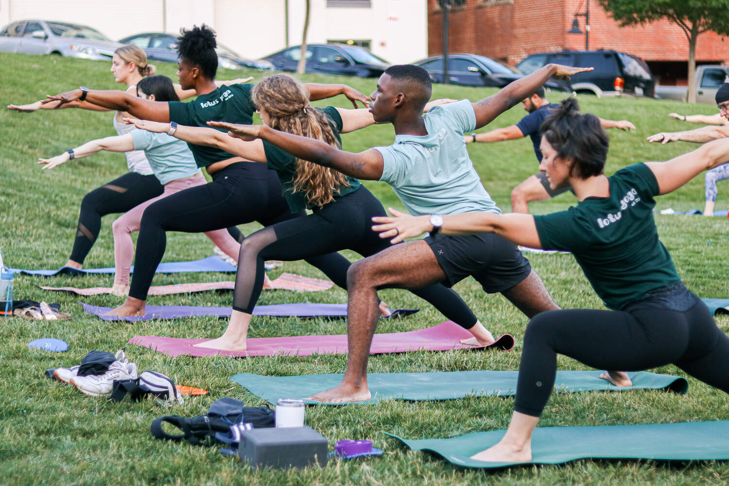 Community, Events & Programming Sunset Salutations May 2021 by Innovation Quarter May 19, 2019 1 minute read Share this story on Facebook Share this story on Twitter Share this story on Linkedin Share this story via email A photo recap of Sunset Salutations yoga on May 19, 2019 in Bailey Park in the Innovation Quarter.