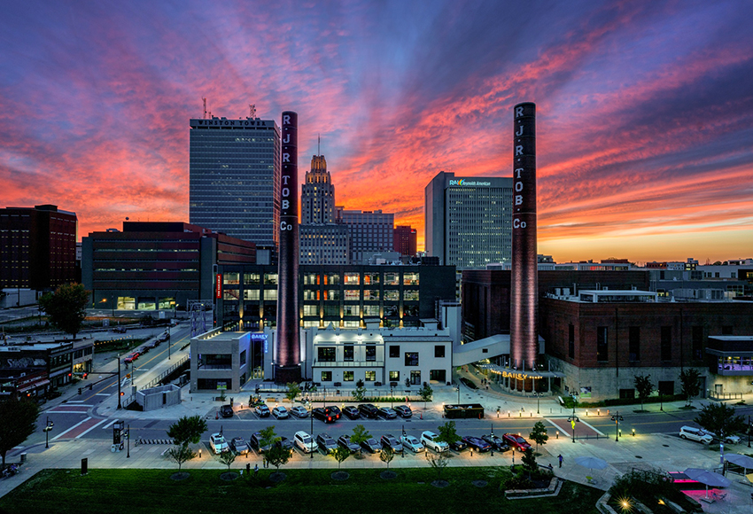 Your gaze drops down and you glance over to your right at Bailey South, one of the newer redeveloped historical buildings in the iQ. From Patterson Avenue where you stand, you can see the building’s familiar bookends: Barcelona Burger + Beer Garden and Six Hundred °.